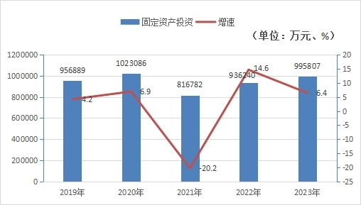 2023年,全區完成固定資產投資995807萬元,比上年增長6.4%。從三次產業結構看:第一產業完成投資81666萬元,占全部投資的8.2%,比上年增長3.4%;第二產業完成投資484587萬元,占全部投資的48.7%,比上年增長0.8%。在第二產業投資中,電力、熱力、燃氣及水的生產和供應業投資54600萬元,比上年增長73.5%;制造業投資430488萬元,比上年下降4.2%;第三產業完成投資429554萬元,占全部投資的43.1%,比上年增長14.1%。在第三產業投資中,房地產投資165940萬元,比上年下降4.3%。從建設構成看:建筑安裝工程完成813948萬元,比上年增長3%;設備工器具購置71203萬元,比上年增長200.7%;其他投資110656萬元,比上年下降9.3%。從建設性質看:新建投資737210萬元,比上年增長16.3%;改建和技術改造投資96703萬元,比上年增長42.1%;改建投資4450萬元,比上年下降94.8%;其他投資157444萬元,比上年增長5.9%。從經濟類型看:國有企業及國有獨資公司投資308054萬元,占全部投資的30.9%,比上年下降3.1%;私營企業投資385121萬元,占全部投資的38.7%,比上年增長9.7%;其他投資302632萬元,占全部投資的30.4%,比上年增長13.3%。全年共有固定資產投資項目180個,與上年持平,其中:2023年新開工項目84個,比上年減少25個,本年投產76個,比上年增加23個;新增固定資產366134萬元,比上年增長20%。
