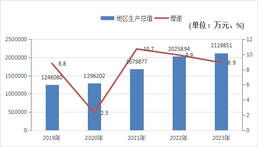 初步核算,2023年全區實現生產總值2119851萬元,比上年增長8.9%,其中,第一產業增加值完成140881萬元,比上年增長4.7%;第二產業增加值完成1290847萬元,比上年增長14%;第三產業(服務業)完成增加值688123萬元,比上年增長2.9%,人均地區生產總值為143870元,比上年增長9.7%。第一、第二、第三產業對全區生產總值增長的貢獻率分為:4.1%、83.1%、12.8%。三次產業結構的比為6.6∶60.9∶32.5。第一、第二、第三產業對經濟增長的拉動點分別為0.37%、7.39%和1.14%。
